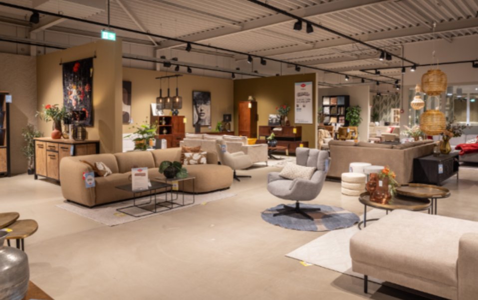 De winkel op Woonboulevard Breda is overzichtelijk, inspirerend en vooral ontspannen om doorheen te lopen. Bezoekers kunnen er op hun gemak rondkijken, meubels uitproberen en ontdekken hoe zij met slimme keuzes een stijlvol interieur kunnen creëren dat past binnen hun budget.