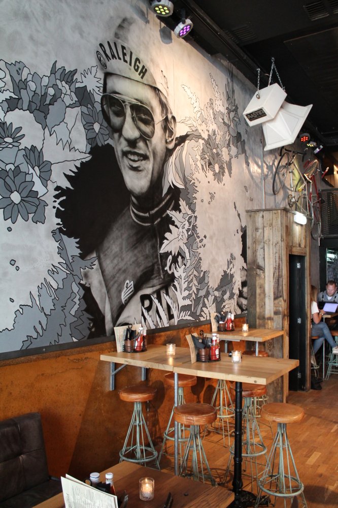 Qua sfeer zit je sowieso goed bij Old Dutch; omringd door muur- en plafondschilderingen en foto's van grote Nederlandse sporthelden zoals "De Kneet", Pieter van den Hoogeband en Raymond van Barneveld bevind je je duidelijk in een sportbar. De combinatie met ruwe, industriële materialen maakt het extra gezellig. Wij konden het volledig doorgevoerde concept, compleet met gymvloer en klimrekken tegen de wand in ieder geval erg waarderen!