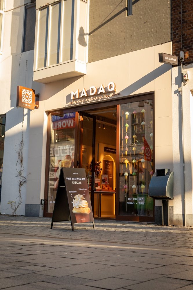 MADAQ begon als chocolatier met een duidelijke focus op gifting. Inmiddels is het merk uitgegroeid tot een volwaardig belevingsconcept met onder andere ambachtelijk ijs, matcha en de inmiddels bekende – en op social media viral, Apple Crumble. Toch blijft de basis altijd hetzelfde: kwaliteit, rust en luxe.