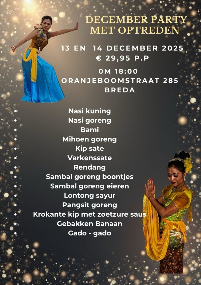 In december organiseert Restaurant Gadjah op 13 en 14 december 2025 speciale 'All You Can Eat'-avonden voor €29,50 per persoon. Het buffet is geopend van 18:00 tot 20:30 en wordt opgeluisterd door een prachtige dame die een traditionele Indonesische dans uitvoert. Plaatsen zijn beperkt!